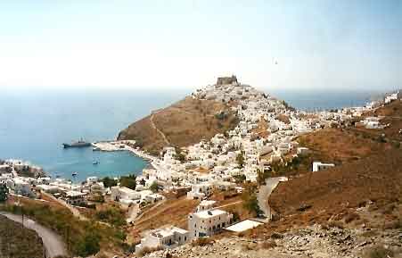 Des del port fins a dalt de tot de la ciutat, Xora, les cases blanques van pujant en amfiteatre fins al castell. Portes i finestres blaves i ja tenim el típic poble grec.