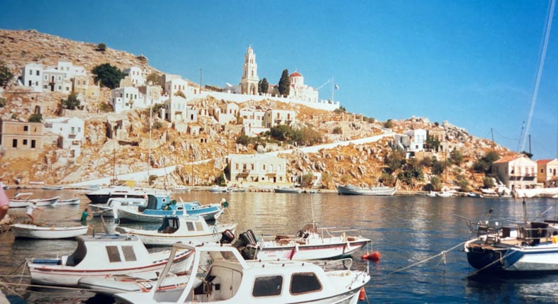 Tenia una setmana de vacances i vaig viatjar amb un amic a Rodes. L’objectiu és conèixer les illetes de Simi i de Níssiros. L’endemà una barca surt cap a Simi. Sortim del port i deixem enrera les columnes dels cérvols. La costa turca és a l’est, a tocar.