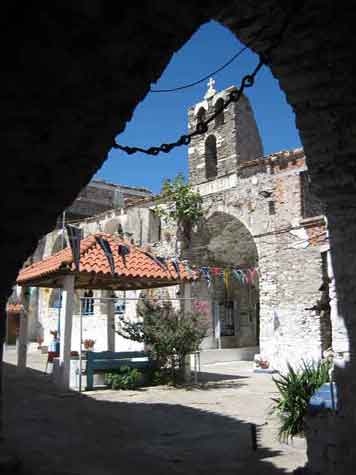 Kumaradei i Pirgos són famosos pel vi, pomes, mel, ceràmica i catifes. Drakí, penjat al cul del món, és un poble amb 3 tavernes que es disputen la clientela perquè hi prenguis alguna cosa; també hi lloguen habitacions. El monestir més bonic és el de Megali Panagia, pintat de blanc, rosa pàl·lid i granat, amb un gust exquisit i al de Pigí trobem monges que canten vespres, amb sons entre orient i occident. De les moltes platges, destaquem Tsópela, la badia d’Ormos Marazo-kampos, Mikali, amb tamarius i algunes tavernes, com la Mirto, portada per la Maria, que lloga habitacions, Murtià amb barquetes amarrades i arbres fins a la mateixa aigua i uns quants alocs (les costes de Turquia són a 1 Km) i Posidoni (record tangible d’orades, tsatziki i vi blanc).