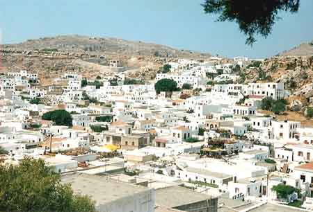 Lindos, a 56 Km de la capital, és una cala poblada amb ramats de turistes, església bizantina, cases antigues, portals de pedra, botigues i bars. L’Acrópolis, a 114 m d’altitud, maca, però la calor és asfixiant. El poble, a baix, blanc i net.