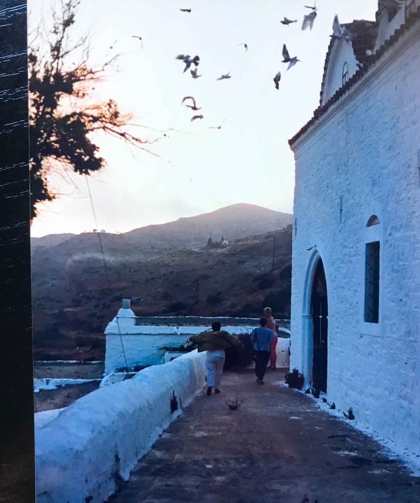 Un capvespre anem a Messanagros, a 17 Km de Genadi, un poble rural on no es pot passar desapercebut, sense turistes. Encara que volguéssim no podríem endinsar-nos-hi: els carrers són tan estrets que només hi passen els rucs i les motos. Arribem a l’església, amb centenars de coloms al campanar. La vall dorm, quieta, als nostres peus i el sol es pon. Cases pintades de blanc. Forns casolans a fora. Velletes negres, tapades. Una dona jove, pel carrer, ens ofereix pa. Poc després un home surt d’una casa i ens convida a entrar-hi; la muller ens porta refrescos (potser caducats perquè després tenim mal de panxa). L’avi, d’origen italià, ens parla de Mussolini i el feixisme, quina desgràcia. Ens ofereixen una coca de llimona, beneïda i ens donen un ram d’herbes. Quan marxem, els preguntem si els hem de donar res: doncs sí, ves! Sortint, caminem uns metres i ens topem amb la taverna de Mikis, que ens fa seure. Els homes del poble xerren i fan la partida; com arreu, ni una dona.