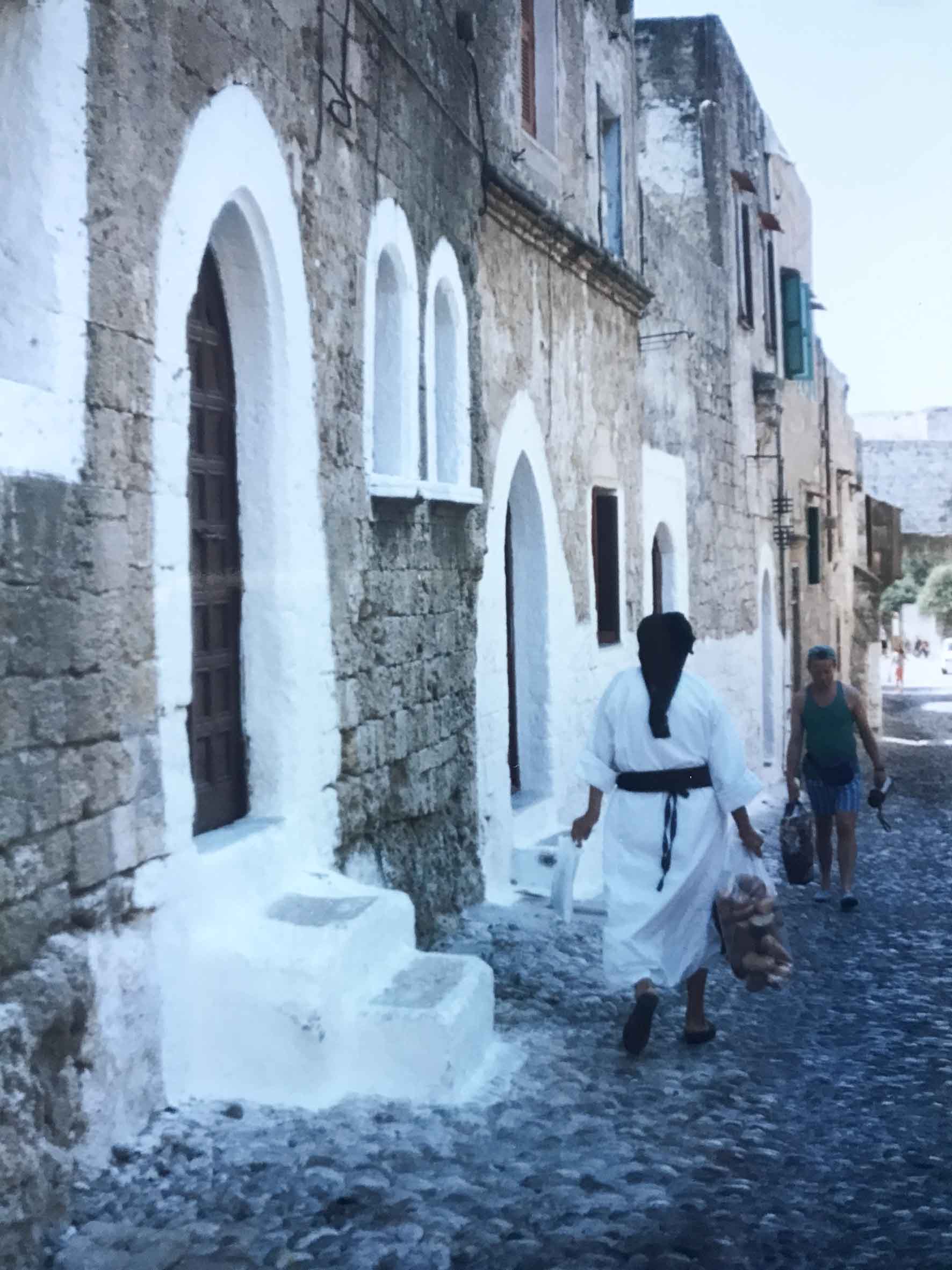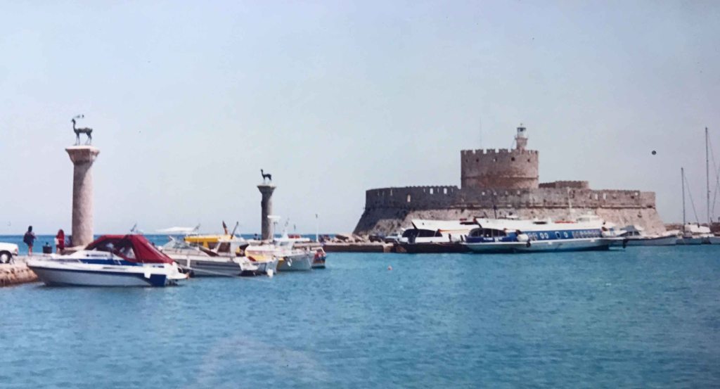 La ciutat de Rodes és una obra d’art i cal comptar que hi ha molt turisme. Sempre que hi hem anat, ens hem allotjat a l’hotel Hermes. La ciutadella fou el lloc de residència dels cavallers de Rodes i té doble muralla. El carrer dels cavallers segueix l’antiga via que conduïa des del port a l’acròpoli, amb les cases de l’Edat Mitjana. Dalt de tot, el palau dels grans mestres, del XIV, que imita el palau d’Avinyó. Utilitzat com a presó pels turcs i destruït per una explosió del dipòsit de municions el 1856. Reconstruït pels italians com a casa d’estiueig per a Mussolini i Victor Manuel III. El marbre de l’interior és de Kos. A la ciutat hi ha mesquites, com la de Mustafà i la de Soliman, petites esglésies, carrerons estrets amb façanes pintades de blanc, groc, blau… portetes, botigues, tavernes i botigues al carrer de Sócrates. Com a cosa especial, el carrer de les pastisseries, el paradís de la dolçor, que no es pot perdre.