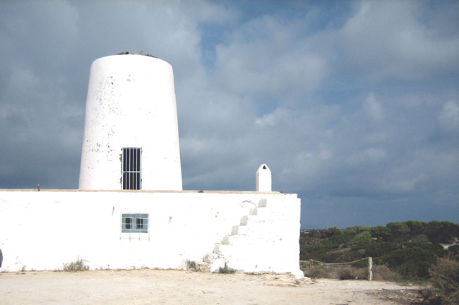 La 3a caminada la fem des d’es Caló de Sant Agustí, un petit port en una zona de roques i coves, a l’altra banda de Mitjorn. Pugem cap a la Mola; en un mirador es veuen les dues bandes de l’illa. Des del Pilar de la Mola caminem cap al far per una carretera envoltada de camps de melons, síndries, carbasses i algunes vinyes ja sense raïm. Trobem la indicació del molí vell, i anem a veure’l. La senyora que ens atén és la muller de l’últim moliner de les Pitiüses, de la família Mayans. Fa uns anys que la Fundació Balear s’encarrega de mantenir-lo i deixar-lo visitar; ens explica que hi molien cereal per fer-ne farina per a la gent i per al bestiar. Tot el camí, llangardaixos que creuaven la carretera d’una banda a l’altra. Al far, els penya-segats amb un blau profund de l’aigua. Des d’aquí es veu tot Eivissa; des del balcó de l’habitació veiem la posta de sol, potser la millor d’aquests dies, amb núvols esfilagarsats i el sol que vessa tota la sang que duia a les venes per sentir-se, potser, més proper als que avui pateixen guerres i violència.