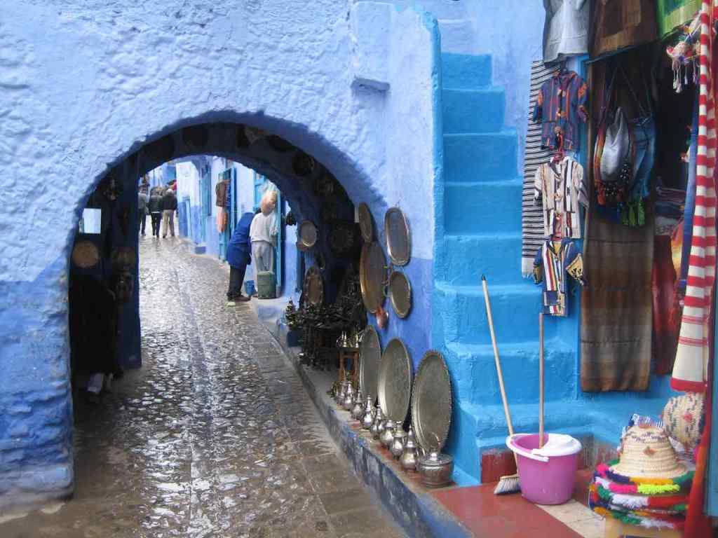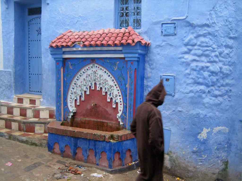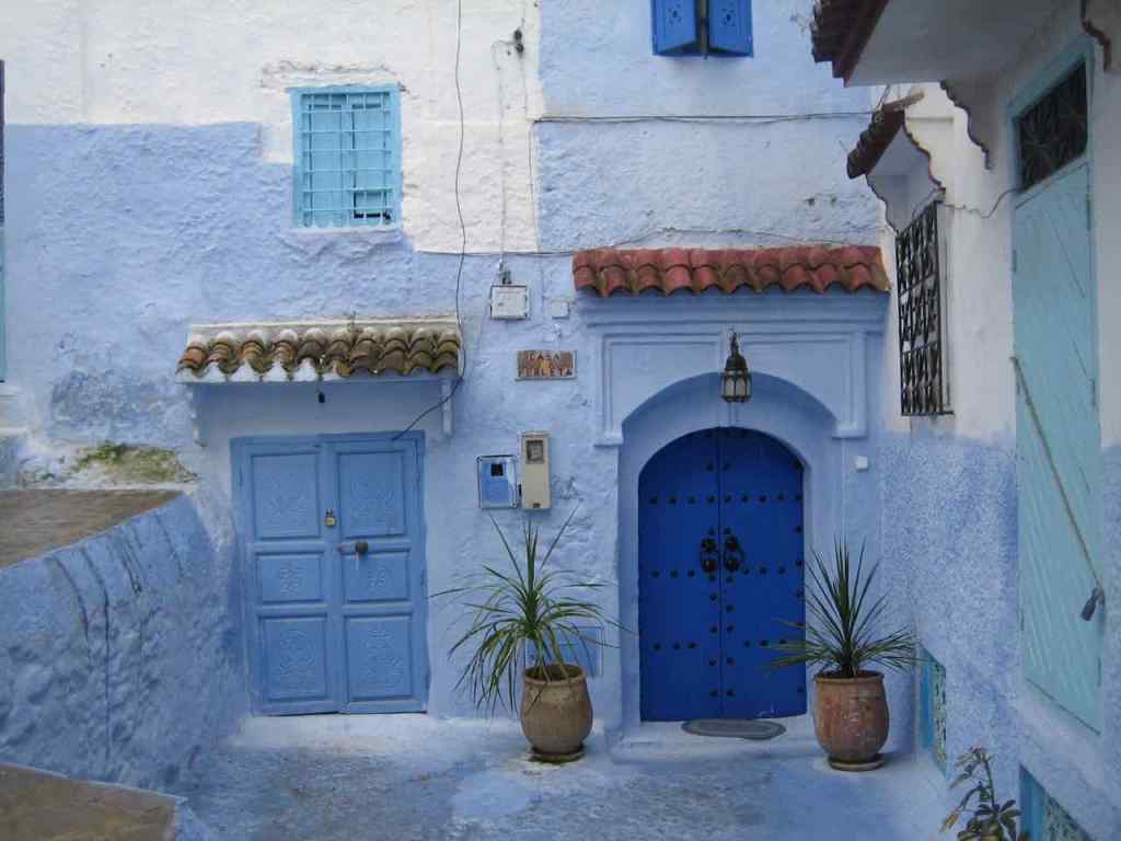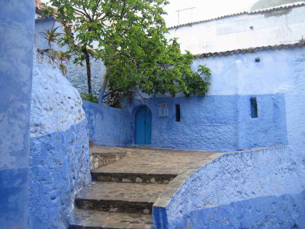 Venim de Ketama, la capital del kif (hachís). Hi hem passat de llarg, espaordits de por. I ara arribem a la blanca i blava Xaouen (Chaouen, Chelchaouen), a 600 m d’alçada i 45.000 habitants. Ens allotgem a Dar Meziana. Carrers estrets i costeruts. Cases blanques, portes i finestres blaves. Passa un home que porta un carret. Una dona carregada de llenya. Dos nens amb una pilota a les mans. Una botiga de música. Una ferreteria que es diu Barça. El bar d’un hotel on podem fer una cervesa… ens encanta aquesta ciutat. Pujades i baixades. Escales. Túnels. Un arbre.