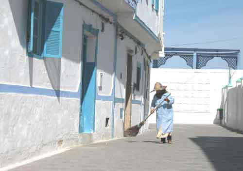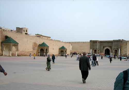 Havíem dormit a Assilah i vam anar a l’estació per agafar el tren a Meknés. Era un semidirecte que sortia a les 11.45 i hi arribava en 3 hores i 10 minuts. No podem agafar bitllets de 1a perquè s’havien exhaurit; per tant, viatgem com la resta de mortals. El bitllet val 66 dirhams (uns 6 euros per recórrer uns 310 km) i som els únics estrangers. L’andana és plena de gent amb maletes i paquets; quan arriba el tren va ple de gom a gom. Hi pugem com poden i ens quedem entre un passadís i una entrada, mig penjades, però al cap de 10 minuts, sembla mentida, ens anem fent lloc en els pocs cm quadrats que tenim. A l’estació següent la història torna a començar: semblava que no hi cabia ningú més, però els de baix a l’andana empenyen amb força cap amunt i tots tornem a trontollar i a suar. I de nou ens tornem a conformar amb la ració de cm quadrats(ara menys que abans). Un home ha pujat amb un paquet enorme: un televisor i no precisament de pantalla plana. La dona que seu al davant del WC, envoltada de paquets, es nega a moure’s davant els intents frustrats de viatgers amb ganes de buidar la bufeta. Les dones, ho constatem, són les grans lluitadores per un tros d’espai.