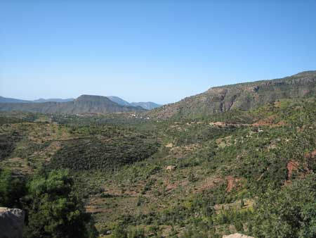 Al vessant sud i a l’Anti-Atlas: les cascades de Timouzen ou Tanane, la vall d’Ammelne i la ciutat de Tarudant. La llengua berber comparteix espai dins el tripartit lingüístic amb àrab i francès.