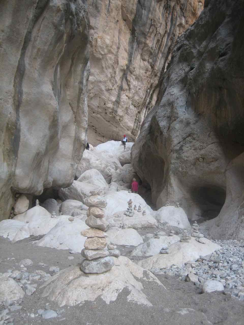 Des de Dorgali, vam anar a les Goles del Gorropu, entre el mont Odoleu i la punta Cucultas, el canó més profund d’Itàlia, amb parets verticals de més de 400 m, plantes i fauna endèmica. Un cop a baix, vam anar entrant cap endins, intentant sortejar les enormes boles calcàries. I a fe que ho vam fer fins que es podia. En tornar, les nostres mans estaven fines i blanques.