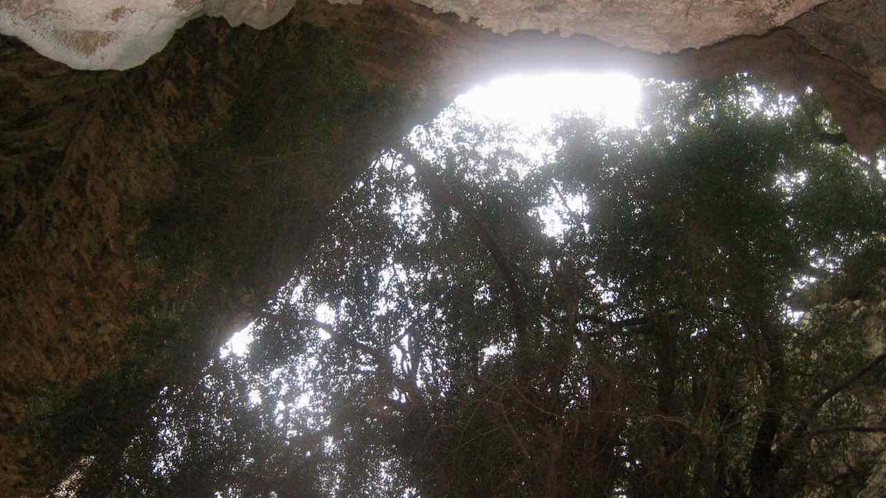 Un altre dia anem al poblat de Tiscali. És un dia que no ha sortit el sol i tirem amunt fins un punt que cal grimpar una mica i seguir el sender. Comença l’últim assalt a la muntanya, fort, entre pedres calcàries blanques i trencades. Al cap d’una hora 45′ arribem a l’antic poblat nuràgic construït a l’interior d’una enorme dolina; el sostre de la capa superior va caure i va ser cobert per la vegetació. A dins hi ha les cabanes. Tot el massís del Supramonte està format de pedres calcàries d’origen orgànic, d’una antiguitat de 160 a 180 milions d’anys (Juràssic).