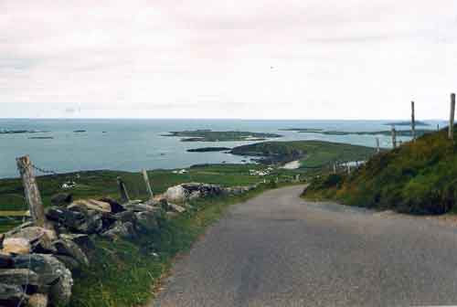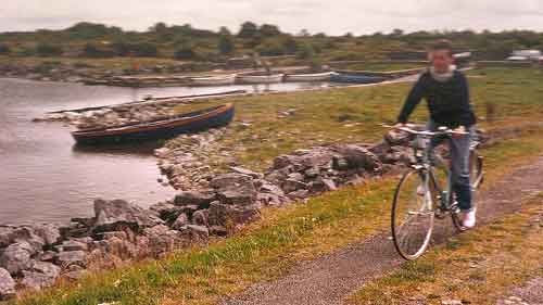 Cromwell deia: “o a l’infern o a Connemara”. El 80% de les terres no es poden conrear, però la pobresa la salvà d’espoliacions. Galway és la capital. A l’església de S. Nicolàs hi ha la tomba del jutge Lynch, que el 1493 va fer jutjar el seu fill perquè havia mort un convidat. Fou condemnat a mort i executat. A la plaça hi ha unes quantes estàtues, una d’elles, la d’O’Connaire, un home que viatjava amb el seu ruc, escrivint i explicant contes. El parc de la plaça duu el nom de JF. Kennedy, que el visità el 1963. Vam anar a l’Arc hispànic, anomenat així pels galions espanyols que hi topaven, i vam passejar per la Universitat, del 1849 d’estil Tudor, un lloc tranquil, amb un pati ple d’heures al mig de l’edifici. Reagan hi va anar el 1984. Li devien posar orelles de burro… A prop del port hi ha molts edificis vells i deixats, que li donen un aire trist. Un pub per posar-se content: The Crane Bar, famós per la seva música popular. Un dia lloguem bicis per anar al llac Corrib (té 364 illots dins). Sortim cap a Costelloe, per la costa de la badia de Galway amb impermeables posats, per la pluja. A l’entrada d’un poble anomenat Barna girem, arribem a la carretera general de Galway i girant a l’esquerra en direcció contrària, emprenem camí cap a Moycullen, a uns 3 km, on descansem una estona. El poble que voreja el llac és Knocferry, un port natural, cases disperses i un petit hotelet. Cap cotxe, cap turista. Només fred i pluja. Dinem a l’hotel i, refetes, retornem a Galway per l’interior. Hem vist un camp ple de pallers petits coberts amb robes de roba i plàstics de colors diferents i amb una pedra lligada amb una corda per impedir que el vent s’endugués la palla. Hem fet 66 km.