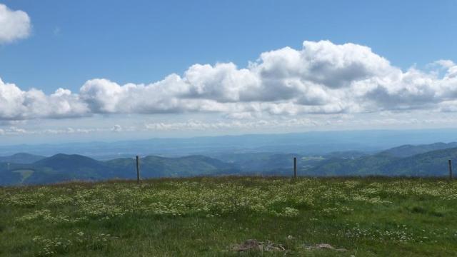 Fem els dos cims: primer el Belchen. La carretera puja fins a les cistelles, però s’hi pot anar a peu. Un cop dalt, es pot fer el camí que circumval·la el cim, per tenir una panoràmica de 360º i pujar per algun dels caminets fins dalt, un cim arrodonit, a 1.414 m. Al nord Friburg, turons, valls i poblets. A l’oest, la vall de Münstertal i la plana del Rin; al fons, els Vosgos. Al sud, els Alps suïssos i el Mont Blanc, avui una mica emboirat. Callem, busquem captar imatges amb artilugis digitals que no sabem quan duraran. Ens somriem els uns als altres.