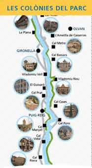 Us expliquem la ruta de dues maneres diferents: la primera amb cotxe: Can Vidal, Viladomiu Nou, Cal Bassacs, Viladomiu Vell, Colònia Guixaró i Colònia Pons. La segona vegada a peu, de Cal Rosal a Puig-reig, passant per la colònia la Plana, la d’Ametlla de Casserres, cal Metre, cal Bassacs, Viladomiu Nou i Vell, Guixaró, Cal Prat, i Cal Casas.