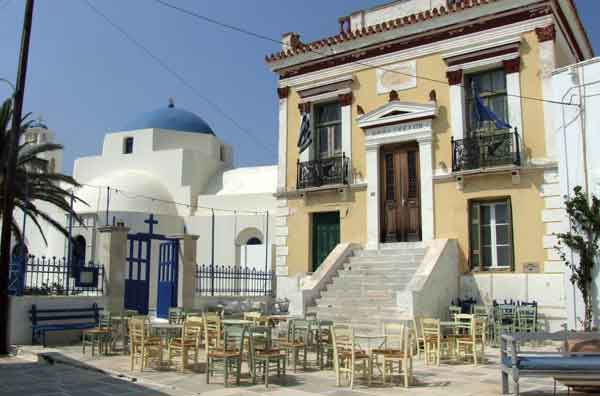 Serifos és l’illa on Perseu arribà amb el cap de Medusa. El port s’anomena Livadi. El nom significa “nua” i ens n’adonem aviat, per seca i àrida. Des del mar, destaca la blanc i allargada Xóra, dalt d’un turó. La “piatsa” és la plaça emblemàtica, amb l’església de S. Anastasi, l’Ajuntament, el bar Louis i el cafè Stu Straton.