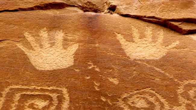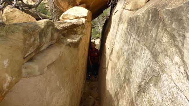 Des d’Spruce pugem per un sender cap a Petroglif Point. El camí passa per sota la mateixa balma (d’alguna manera ens ha recordat Mont-rebei, salvant totes les distàncies) i a l’altra banda tenim el canó.