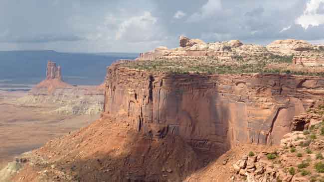 De nou a Cannyonlands, arribem a Island in the Sky: la primera parada és per veure un arc, Mesa Arch (a 800 m del mirador); després enfilem fins al final, Grand View Point Overlook.