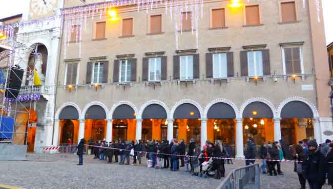 Curiosos els frescos de la Camera di San Paolo en un convent benedictí amb escenes mitològiques de Correggio del 1518, que sorprenen perquè no tenen res de religioses. A la plaça Garibaldi, un gran arbre de Nadal amb aquest rètol: “A Parma, més de 2.500 famílies són pobres”. A l’església barroca de S. Giovanni evangelista, un fresc a la cúpula, “Visió de S. Joan a Patmos” de Correggio i un altre de S. Giovanni, de Parmigianino, però el més curiós és una capellà alt amb sotana i una bata per sobre, que va passant la mopa i no es perd detall: et diu on has de mirar i per on no pots passar.