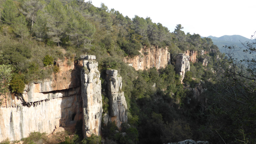 Ens desviem per un corriol cap avall per veure el salt d’aigua del Prat, al Sot del Bac, una vall estreta, petita i obaga, envoltats d’alzines i roures. No ens sembla que hi hagi massa aigua i pugem amunt aviat, perquè la humitat ens penetra. Continuem fins al punt culminant on tenim una vista preciosa de la vall, amb les formacions conegudes com les Agulles del Salt (roques calcàries i dolomítiques), amb l’Agulla del Salt, la de la Papallona i les dues germanes, la gran i la petita.