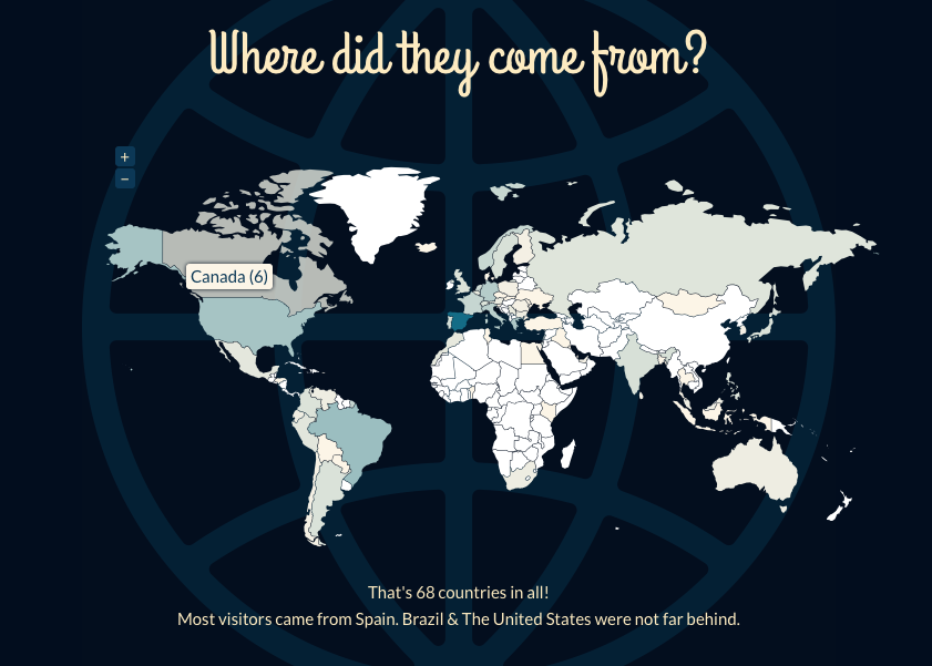 Durant l’any 2014 hem tingut un total de 5.200 visites, la gran majoria d’Espanya (no diferencien Catalunya, encara), però també de 68 països diferents, entre els primers, Brasil, els Estats Units d’Amèrica i Grècia. I ens intriga que hagin arribat a nosaltres gent de països tan llunyans com Bangladesh, Singapur o l’omnipotent Qatar.