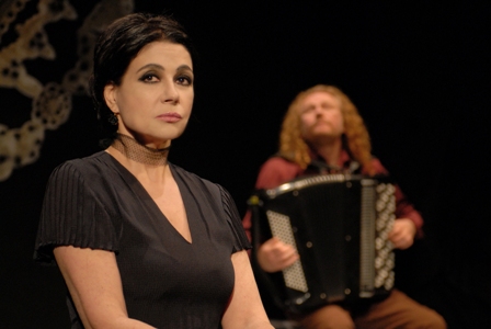 Licia Maglietta interpreta de manera magistral, dirigeix, ha fet l’escenografia i ha adaptat el guió basat en un relat de l’escriptora siciliana Silvana Grasso, una dona amb empenta, com podeu comprovar en aquest vídeo quan era assessora cultural de l’Ajuntament de Catània. Licia, a més d’un llarg historial com a actriu, va posar la veu italiana en el paper de mare de la nena al film Persèpolis. L’acompanya Vladimir Denissenkov amb l’acordió rus, imprescindible, perquè la música acaba sent un i altre personatge. És una producció de Teatri Uniti i per això l’espectacle és en italià, sobretitulat en català.