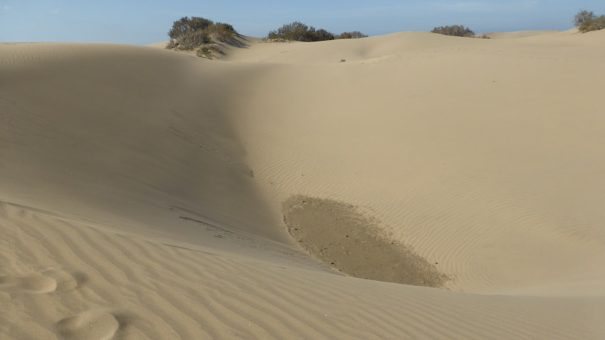 La part més turística de l’illa és al sud, entre Puerto Mogán i Maspalomas (només aquí hi ha més de 180.000 places hoteleres). Si no voleu moguda, aneu només a passejar per les dunes, val la pena. Hi veureu «aulagas» i tamarius i encara que sembli mentida, hi podeu trobar la soledat; però a prop de l’aigua, és la Rambla.