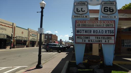 Continuant cap a l’est, ens aturem a Williams, d’on surt el tren cap al Gran Canó. La següent aturada és Ash Fork, un petit i disseminat poble amb un museu que alhora és Centre de Visitants. Hi ha la reproducció de molts elements del poble: una classe d’una escola, el saloon amb els jugadors de cartes, la presó, la telefonista, l’estació amb el revisor i una hostessa…