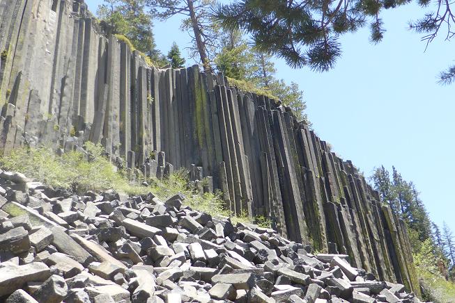La segona caminada és a Devils Postpile. Aquí cal seguir la crta 203 i pagar entrada perquè forma parc del NPS. De fet, però, anar fins al punt d’interès, unes columnes de basalt, hexagonals, formades fa més de cent mil anys quan un riu de lava va baixar, i després es van congelar i partir. És a dir, primer foc, després aigua. Si puges a dalt per un sender es poden veure perfectament els hexàgons. Però l’excursió no acaba aquí. Continuant el sender, anem a Rainbow Falls. Del lloc original fins ara ha retrocedit 100 peus, per efecte de l’erosió. Baixa molta aigua i amb la llum fa arcs de Sant Martí. Quan arribem a l’aparcament estem cansades i i assedegades. El sol era molt potent. Hem fet uns 13 km. Tornant, aprofitem per fer una parada al llac Starkweather, petit, pla, format per efecte de glacials però que per un procés d’»entroficació» evolucionarà a ser ocupat per plantes i bitxos i s’anirà assecant. Just sortir del parc, pugem al mirador de Minaret, amb vistes a la serralada de Ritter Ranger, que forma part de “la Sierra”. A més dels minarets, punxegudes, veiem el cim Ritter (4.010m) i el Banner (3.945m). Quan hem baixat del cotxe, una ciclista estava mirant l’infinit i m’ha saludat així; “Benvinguda al cel”.