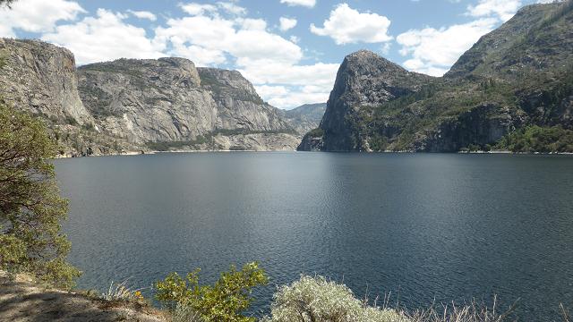 Creuem el parc i pugem a Hetch Hetchy, on hi ha la presa que abasteix d’aigua la ciutat de S Francisco. Allà caminem a les cascades de Tueelala i Wapama vorejant el pantà. Per primer cop, passem calor.