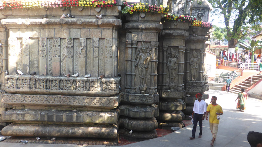 Arribem a la porta on abans cal descalçar-se i guarden el nostre calçat en un sac. El terra és molt brut, amb aigua, pixats… El temple (s.VIII) ha estat renovat moltes vegades, fins el XVII i se’l considera d’estil indígena híbrid (Nilachal). Té una cúpula semiesfèrica sobre una base cruciforme, amb 4 cavitats: garbhagriha i 3 porxos alineats d’est a oest. La gent fa una llarga cua que dura hores i hores per entrar al recinte sagrat. Hi estan acostumats.