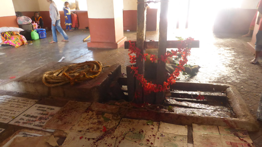 Segons la llegenda, aquest és el lloc on el língam (fal·lus) del déu Siva va caure damunt del ioni (matriu), de la deesa Xacti, coneguda també com a Kamakhya. Els creients hi venen a demanar fertilitat. Els sacerdots van de color vermell, el de la sang. Al següent pati hi ha animals rondant: coloms, cabres, vedellets, porquets… tots són carn d’escorxador perquè s’hi continuen sacrificant animals com fa centenars d’anys. La gent els alimenta amb arròs perquè morin ben peixats.