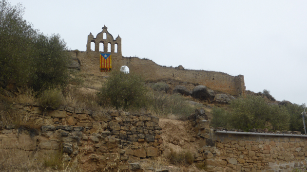 Hi pugem per la pujada del Calvari que després es converteix en pujada del Castell. Triguem uns 15 minuts. Els orígens són del s. XI, dels primers de la comarca. La vall del Llobregós va ser ocupada pels sarraïns el s. VIII i conquerida pels cristians el s XI. El comte Ermengol II d’Urgell va iniciar una campanya per consolidar la línia fronterera que abastava els castells de la vall de Meià, els de Ponts, Ribelles, Sanaüja, Biosca, l’Aguda i Castellfollit de Llobregós.