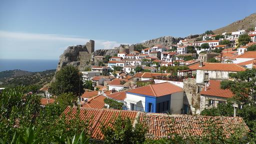 Un altre poble és Profitis Ilies, el més alt de l’illa, famós pels restaurants de cabres, i més avall, Kastelli, amb vistes a turons suaus, camps, tancats de cabres i de fons, el mar.