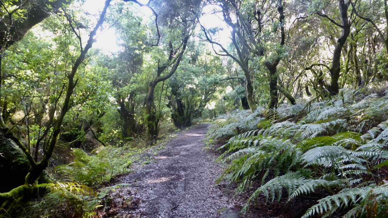 Passem un bosc de laurisilva molt maco, humit, amb molts bolets i alguns raigs de sol que es filtren, creuem una carretera i continuem per un bosc fins a un pontet de fusta, a la dreta de la Montaña Fuente. Gran part de la vegetació és de faigs i brugueroles.