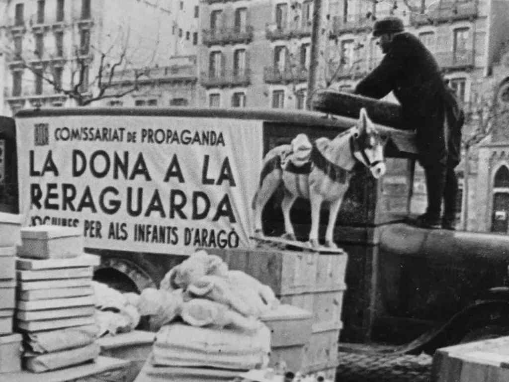 A la mostra del Palau Robert veiem cartells (el famós de Pere Català Pic, fotografies, llibres, revistes, enregistrament sonors (com el de Companys a Madrid: “Catalunya os quiere), documentals de cinema (bombardejos…) i la mascota de la revolució, El més petit de tots.