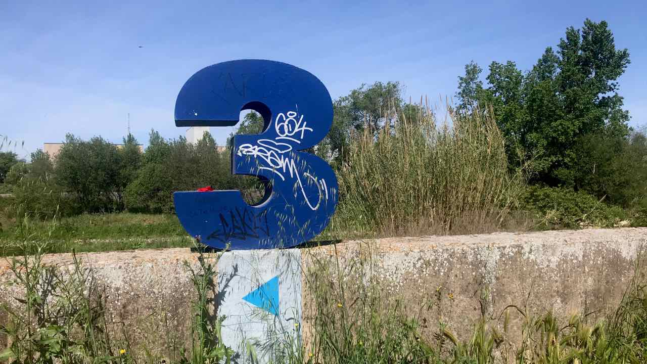Sovint trobem indicadors i nosaltres seguim sempre paral·leles al riu. En un punt, trobem l’anomenat “Gual d’Arquímedes”, on les aigües del riu són a tocar, construït els anys 70. L’any 2020 les aigües es van endur el mur en una pujada del cabal, però es va refer. Més endavant passem sota el túnel de la C-35, on uns grafitaires estan pintant.