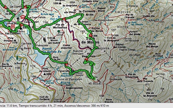 Distància: 7,9 km. Desnivell 366/410 m. Circular. Fàcil