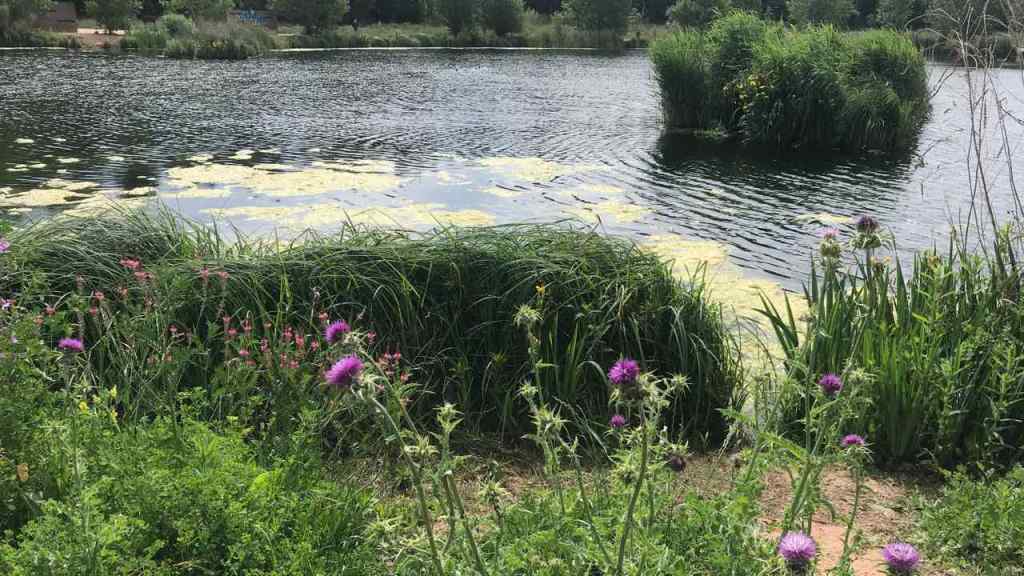 Hi h a un espai per a l’Aula de la Natura, una grandiosa i diversa zona de jocs i a través d’un prat passem i l’espai d’aigua, format formar per tres llacs artificials amb vegetació de ribera.