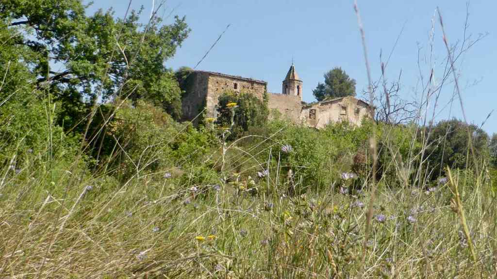 Hem anat per la crta. de la Talaia i hem deixat el cotxe una mica abans del castell de can Ferrer on surt una pista ampla entre els boscos de cal Gravat i el del Forn de la Calç. Més endavant trobem, la bassa de cal Moja, un dels propietaris de terres, on les dones baixaven a rentar la roba. Després de 2,5 km arribem al poble, a 518 m. De fet, l’anàvem veient feia estona, la silueta del campanar, les cases de dalt, les de baix, el colomar…