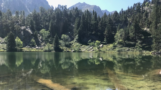 La ruta des del darrer pàrquing d’Espot al llac de S. Maurici és de 4 km que es fan en 1:30 h. per dins del bosc. Un altre dia anem a la Vall i estanys Gerber. Cal pujar amb cotxe el port de la Bonaigua fins al refugi i església de la Verge d’Ares des d’on veiem la cascada de Gerber, on anem. El sender surt ‘un petit revolt 1 km abans. Són 10′ caminant pel bosc. Per pujar als llacs, de nou al cotxe, aparquem a la Peülla. Arribar al primer són 3 km i 45’ per un sender de moltes pedres i arrels. L’Estanyolet de Gerber és d’aigües tranquil·les plenes de vida dels nombrosos insectes que hi pul·lulen, sobretot libèl·lules grans que semblen helicòpters.