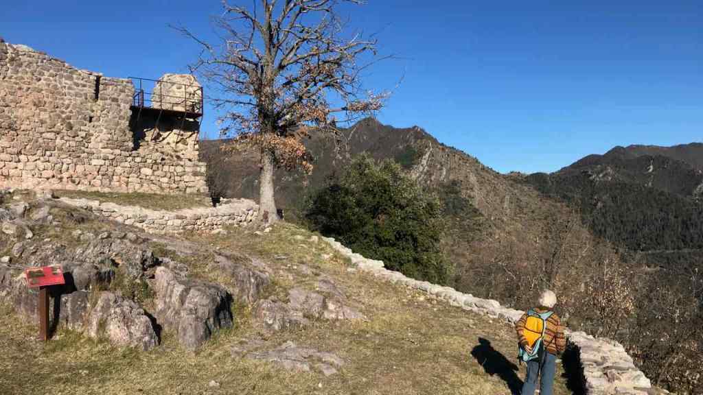 Pugem a un castell, en una caminada que no arriba a un quilòmetre, tot i que al final cal fer una pujada maca per arribar a dalt, a gairebé mil metres d’altitud. Som en terra de fronteres. Abans, breu parada al nucli de Rocabruna. Acabem al poblet de Beget, un dels pobles més macos de Catalunya. Les vistes són excepcionals.