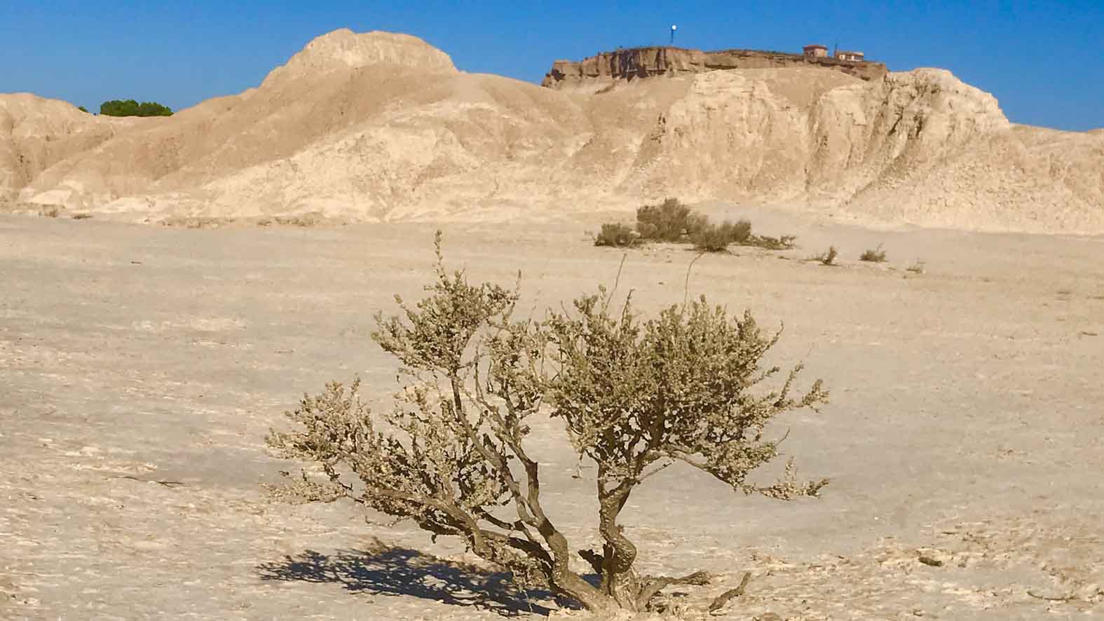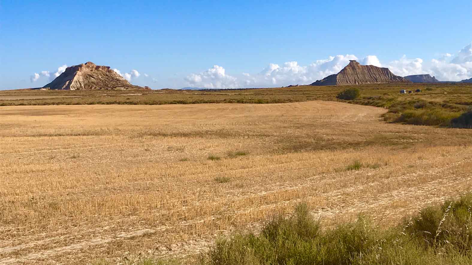 Un desert a 70 km dels Pirineus? Sí, al centre de la depressió del riu Ebre, al sud-est de Navarra. Té tres zones diferents: la Plana, al nord i oest , protegida por roques dures, amb poca erosió i cultius. La Negra és al sud, formada por relleus de baixa erosió, de colors foscos, amb boscos de pins i matolls. La Blanca es troba entre les altres dues zones, al centre, de colors clars. És la més erosionada i la més popular.