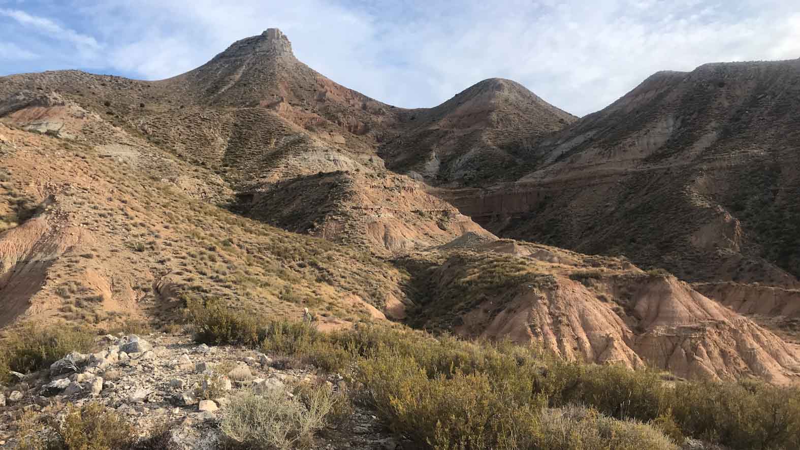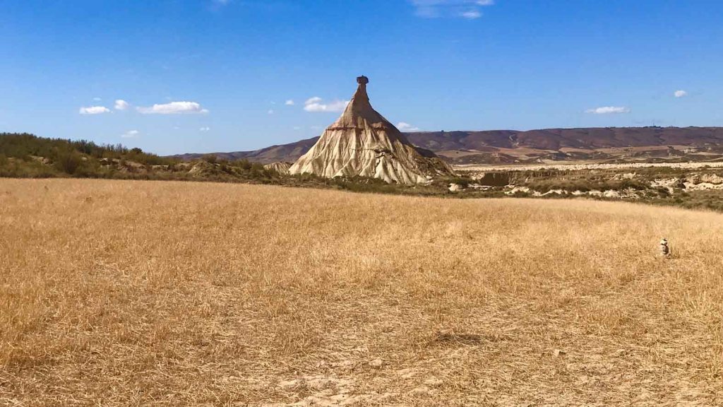 Cap al final arribem a Cabezo de Castildetierra, la formació més popular. A sota, el barranc, sec. Hem vist alguna petita bassa, però hi ha molt poca aigua. Fa anys, per la Cañada Real de los Roncaleses baixaven els ramats des del Pirineu fins a les ribes de l’Ebre a passar l’hivern (el mes de setembre se celebra la festa de la Trashumancia). Ara hi pasturen bens i cabres. El paisatge agrari és una barreja de camps sembrats, altres en rostoll i la resta en guaret.