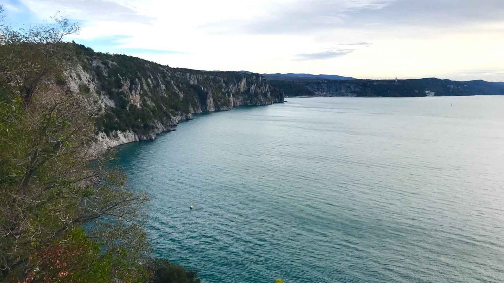 A uns 100 m de la porta d’entrada als jardins del castell hi ha el camí de ronda de la Reserva Natural dels Penya-Segats de Duino. Fem el sender direcció nord, Sistiana, paral·leles al mar Adriàtic, amb molts miradors per observar i bancs per seure. Trepitgem roques calcàries i ens envolta vegetació mediterrània i bosc de pi negre, amb una flor endèmica, la centaurea kartschiana o “fiordaliso del Carso”. L’arribada a la badia de Sistiana és una pena perquè han construït un complex turístic impressionant. Anem a la carretera i esperem el bus que ens tornarà a Trieste.
