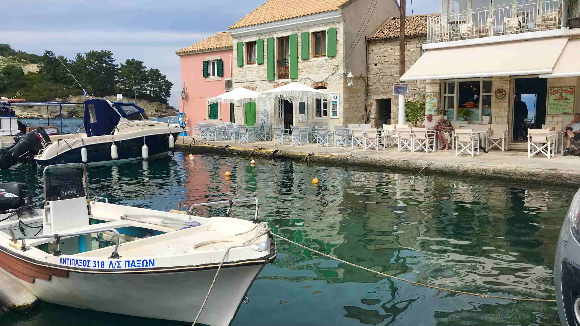 Arribem a l’illa de Paxos (Παξός), a les Jòniques, amb una petita embarcació (1 h) des de Lefkimmi (sud de Corfú). Ens allotgem a Gaiós, la capital, a 2 km del port nou. Els carrers baixen a mar, davant de l’illa d’Agios Nikolaos. Cafès, farmàcia, supermercats i una galeria d’art on anuncien una exposició de ceràmica catalana. Hi viuen 2.300 habitants. Som a principis de maig i no hi ha autobusos (és temporada baixa). Els dos pobles més importants després de Gaios són Lakka, (al nord, a 8 km) i Loggos (a l’est, a 7,5 km). Com a Corfú, la majoria de platges accessibles són a l’est mentre la costa oest és més salvatge.
