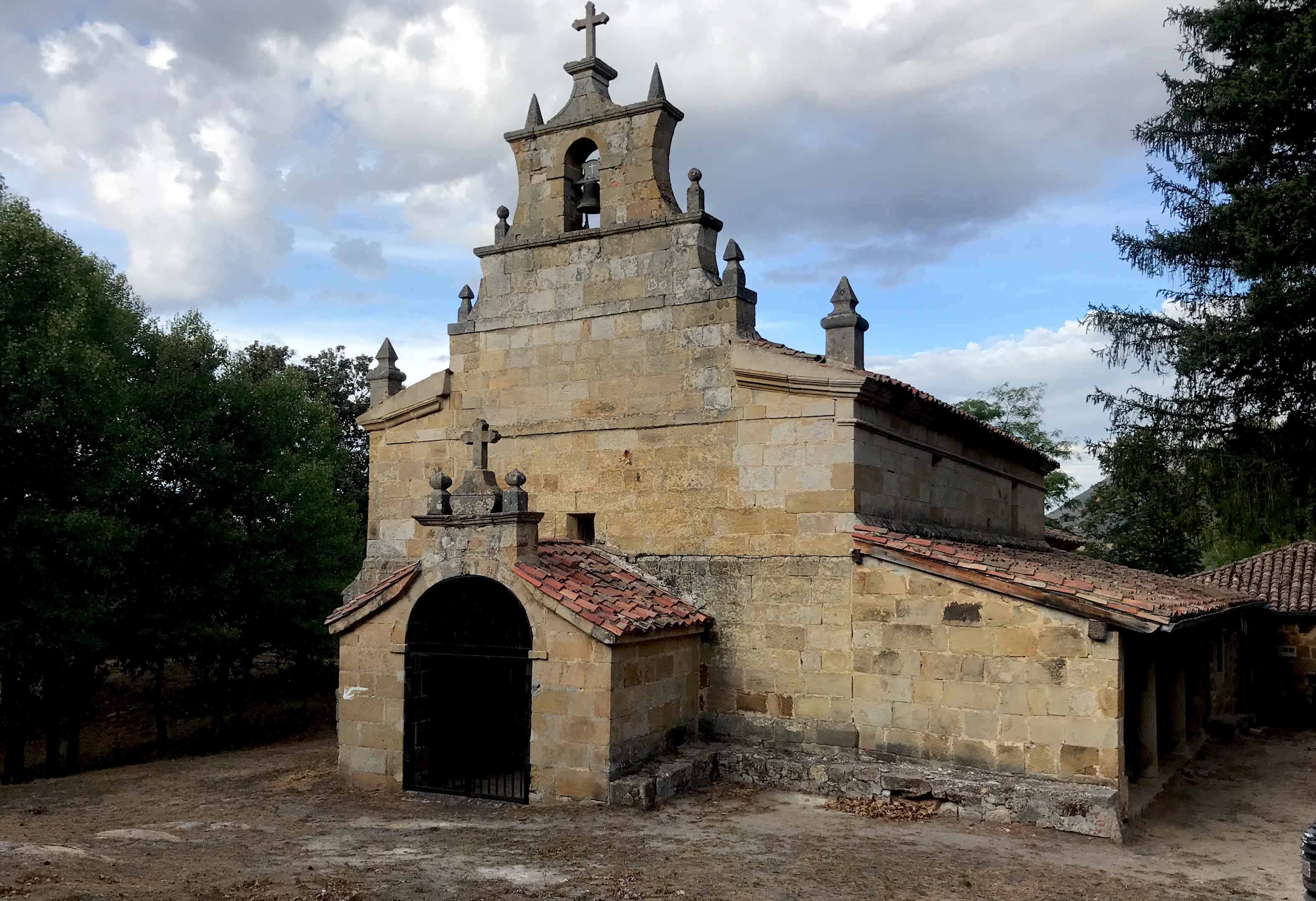 Polientes és la capital de la vall, un lloc de solera. A la façana de l’església parroquial hi ha una gran làpida que diu José Antonio presente i la llista dels seus morts. Baixem al riu, a quasi 1 km, amb molta gent que hi passeja i zona recreativa, i a l’altra banda, el GR99. Per allà anem a l’ermita de la Virgen de la Velilla, demà celebren la festa. Dins, un capellà negre vestit amb casulla blanca celebra l’eucaristia.