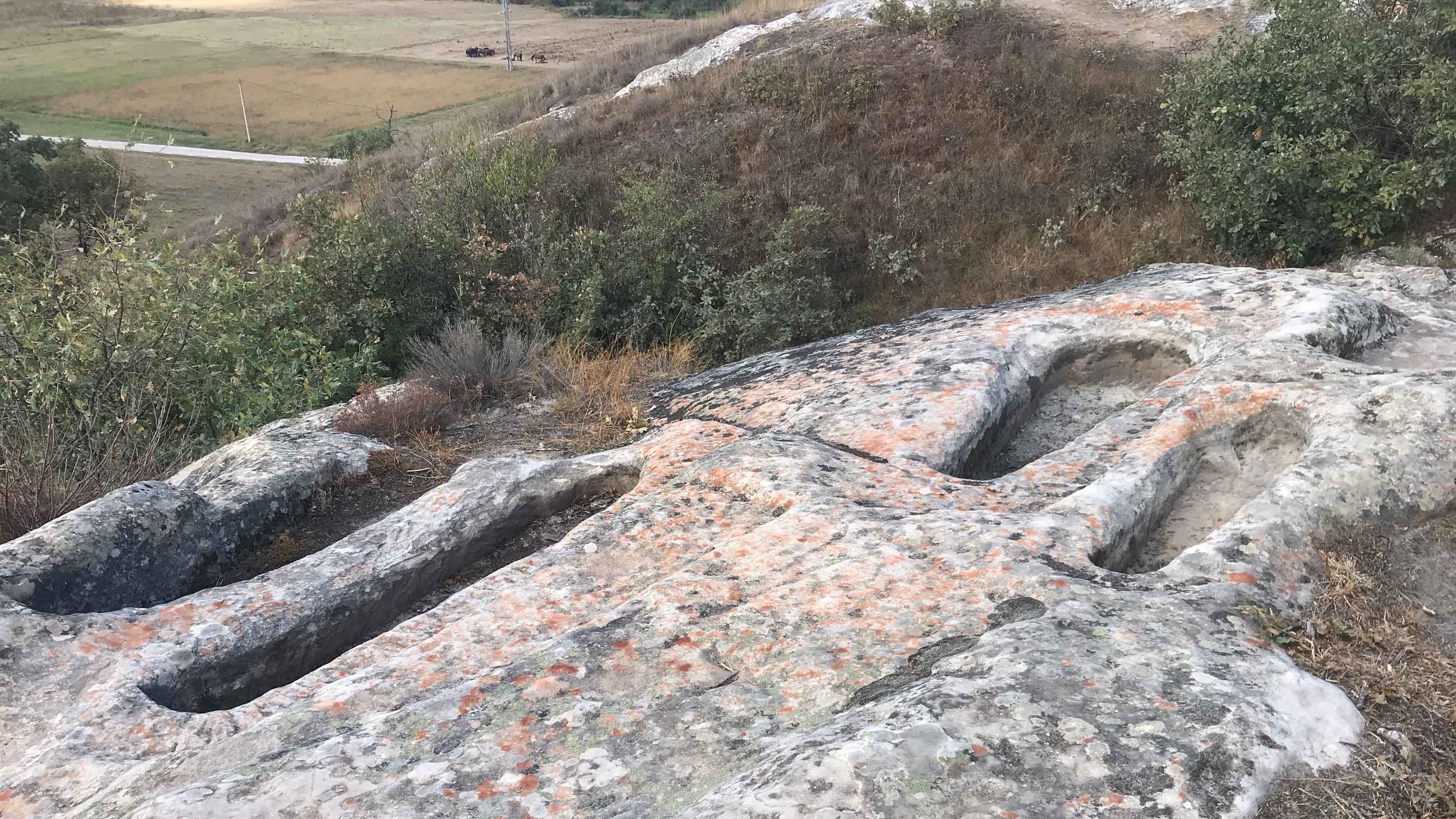 Continuem fins a Villanueva de la Nía, on recuperem el riu Ebre. Allà parem a veure l’església, alçada, i a fer un cafè. Arribem a la necròpolis medieval de S Pantaleón a La Puente del Valle, mal indicada, damunt d’un rocam, amb coves i tombes antropomorfes. Molt interessant!