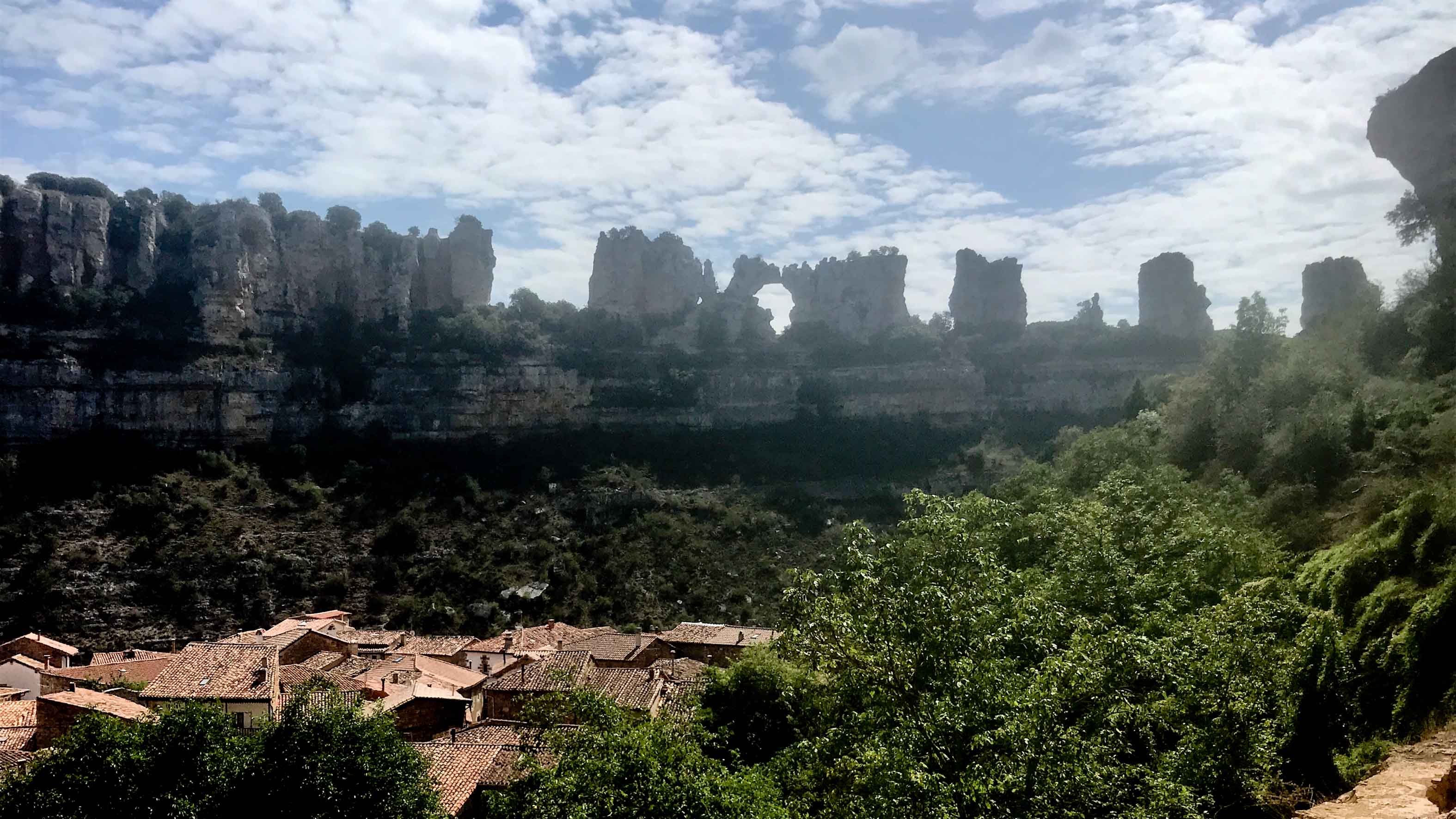 A Villaescusa de Ebro hi ha la cascada del Tobazo, coves i ermita rupestre, i resseguint el riu arribem a Orbaneja del Castillo. Una cascada d’aigua passa per sota la carretera i continua avall, formant basses. A dalt hi ha el poble, premut entre uns quants carrers estrets. Pujant més, la bauma, amb bones vistes del lloc i dels cingles, sobretot de la roca del camell. Hi dinem i continuem uns quilòmetres fins a Escalada. Ens estem en una casa rural amb finestrons i balcons pintats de blau, plena de llibres, amb vistes als cingles i a l’església. Al vespre hi anem a un concert, amb un portal romànic il·luminat, molt maco; a dins, un retaule del s. XVI. Al poble a l’hivern són 20 habitants i a l’estiu 400.