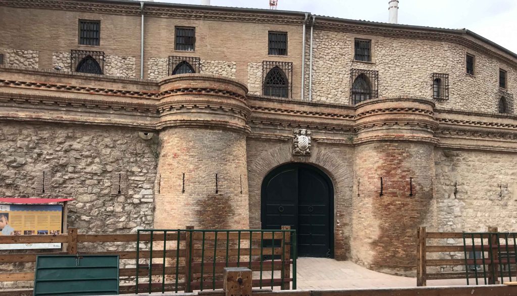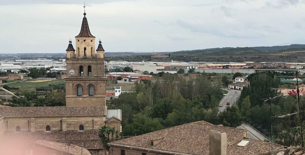 El poble següent és Ribaforada, amb molta vida. Pugem a veure l’església de S. Blas, del XI, molt deteriorada. Per la rambla i els carrers, tractors, botigues, bars i magatzems. El GR segueix fins acabar al parc fluvial de Buñuel, després de travessar la Reserva Natural del Soto del Trencat, el Ramillo i la Mejana. Continuem en direcció al poble, envoltades de camps, sobretot de panís, però també d’una mena de cols d’un verd-blau que no coneixem. Veiem algun pagès, recs… i al fons, els turons de las Bardenas Negres, però no veiem el riu perquè el tapa la vegetació de ribera. Al centre del poble, el palau del Conde de Altamiri.