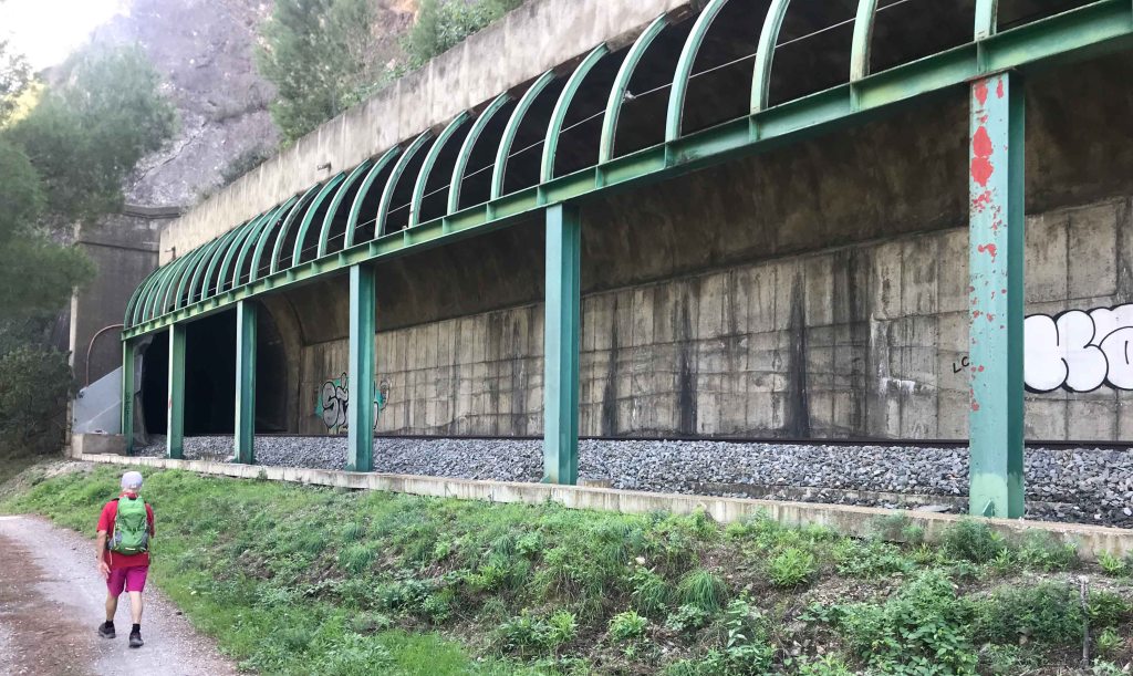 A continuació, Ascó construït damunt d’un turó, però el que destaca més és la silueta de la central nuclear. Restes del castell i la torre mudèjar amb vistes a 360º. El passat morisc es reviu al traçat urbà: carrers estrets i foscos, perxes (o porxos), voltes i sitges. Anem cap al GR 99 i avancem entre el riu i la via del tren, amb franges de camp. Passem per davant del túnel ferroviari a cel obert, amb molts grafits, i el riu es va encaixant entre muntanyes; arribem a un punt on hi ha l’indicador del Pas de l’Ase, a 300 m.
