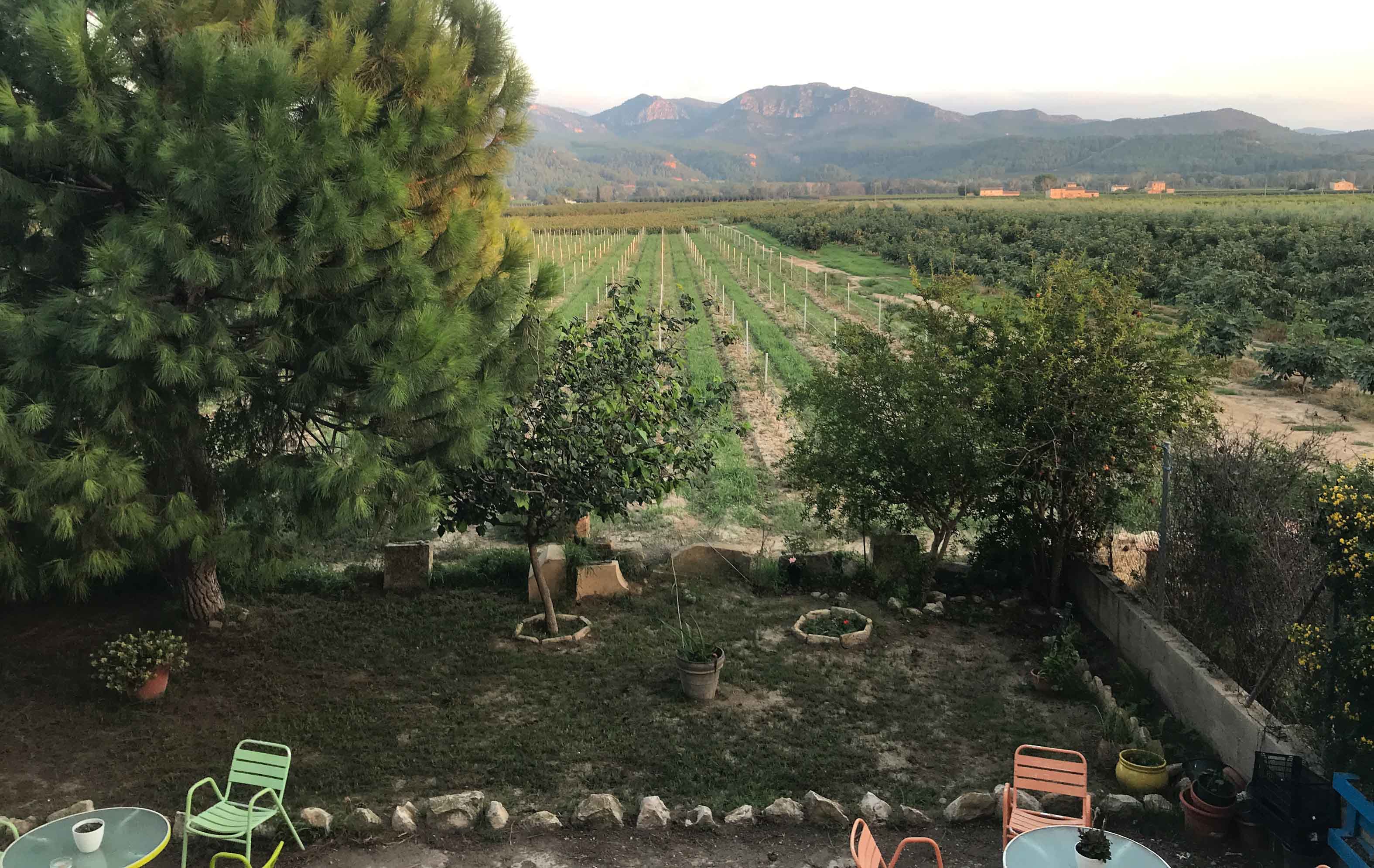Des de Móra d’Ebre cal seguir per un camí asfaltat amb masos a costat i costat. Ens allotgem al Mas rural Taniet al camí de les Sènies, dins la “cubeta de Móra”: terreny pla, camps de fruiters, concentració de calor i de boires. Des de l’habitació, amb dues finestres, veiem la sortida del sol i com es pon.