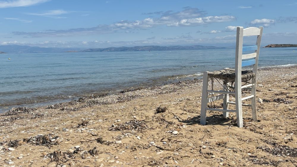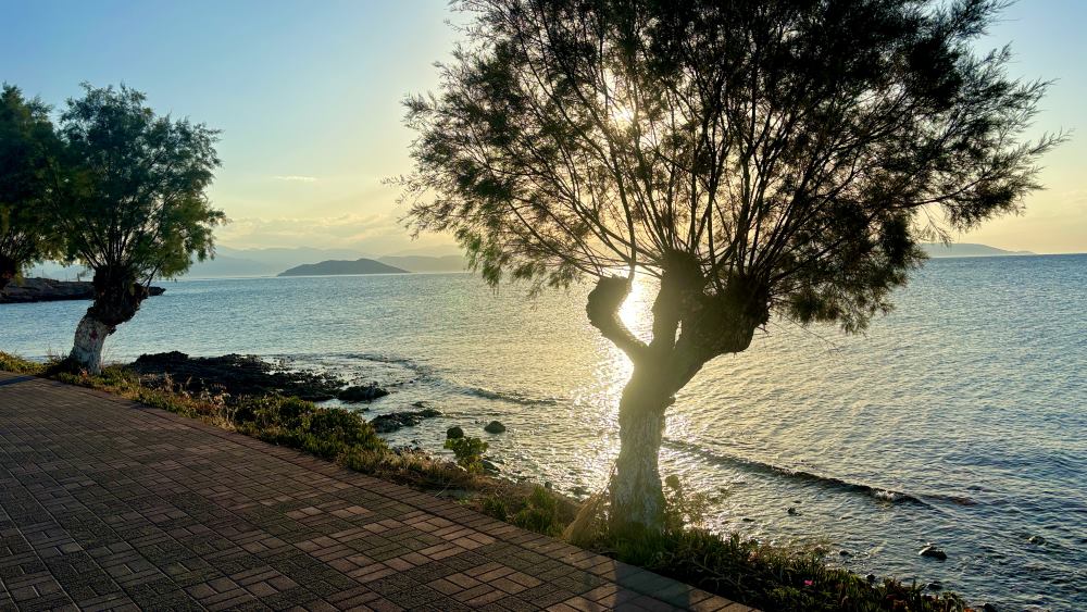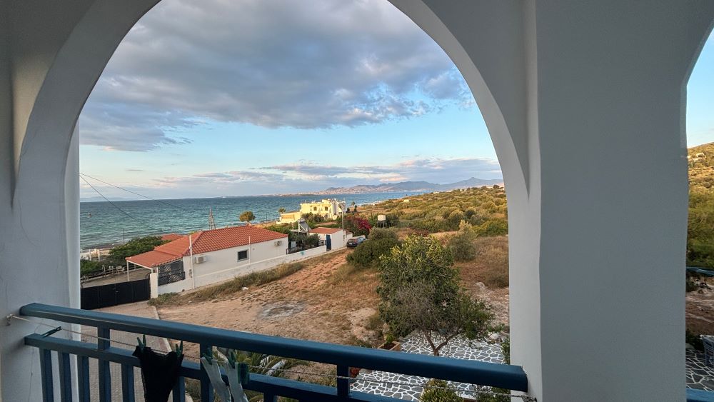 Agistri és una illa de 13 km2 coberta de pins, amb algunes platges, on viuen poc més de mil habitants. La capital és Megaloxori (o Mili), el port principal, disputat pel proper d’Skala, on es pot anar caminant per un passeig voramar. Ens allotgem en un hotel de Megaloxori amb un balconet que dona al mar, així esmorzem i sopem amb vistes. Al poble hi ha un supermercat, un forn, una òptica, una taverna i una església. Properes al mar, algunes tavernes i cafeteries. Com a cosa curiosa, hem vist un centre d’entrenament de boxa amb força moviment.