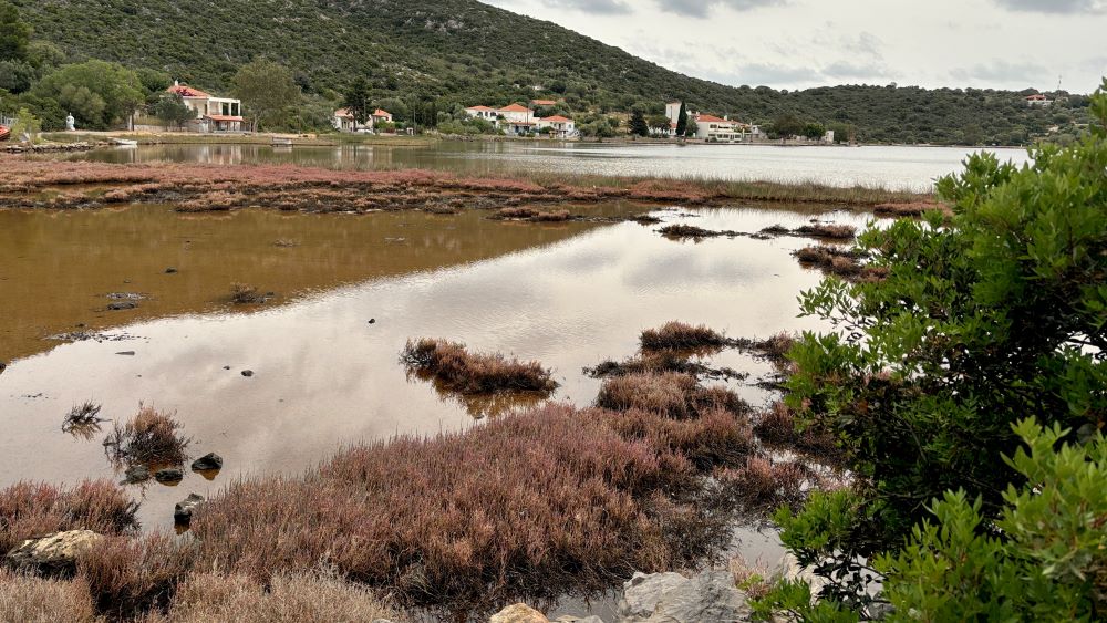 A prop, el canal de Gerakas, on s’obtenien els ous de llisa per a la taramosalata. Llogarret solitari, amb una illa al mig i les ruïnes de Zaraxas damunt. Dinem en una taverna tocant a l’aigua, un dèntol a la brasa, boníssim. Ens ha dit l’Ester que el protagonista de la sèrie del detectiu Kojak, aquell home calb que sempre menjava xupa-xups, és l’actor Telly Savalas i la família eren d’aquí. Un cop ell va venir i va prometre ajudes, però poc després va morir.
